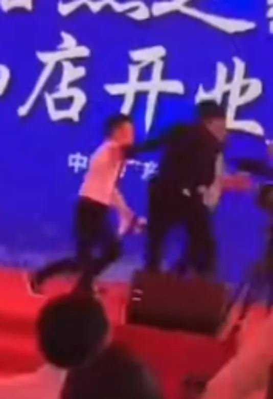 3- เยิ่นต๊ะหัวถูกแทงแต่ยังมีสติดี เมื่อมือมีดจะแทงซ้ำ เขาก็เบี่ยงตัวหลบอย่างรวดเร็วแล้ววิ่งหนีไปรอบๆ ก่อนที่บรรดาการ์ดจะกรูขึ้นมาบนเวที