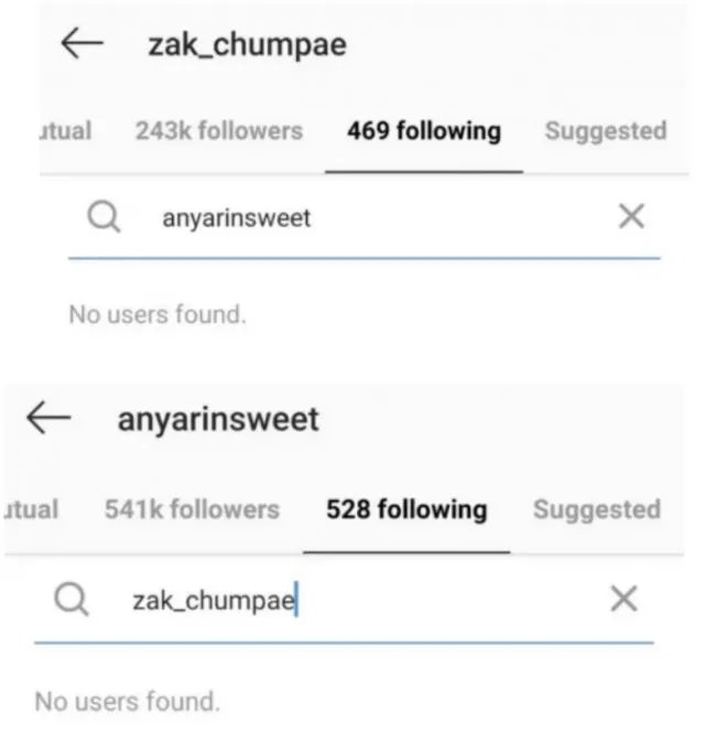 หลังมีกระแสข่าวเม้าธ์ว่าเคยคบกัน แต่กลับต้องยุติความสัมพันธ์ลงเพราะแม่ไม่ปลื้ม และถูกมองว่าไม่เหมาะสมกัน มีคนสังเกตว่าทั้งคู่ได้อันฟอลโลว์ไอจีกันแล้ว แถมฝ่ายชายยังโพสต์ข้อความเศร้าในไอจี ทำนองอกหักช้ำรักอีกด้วย