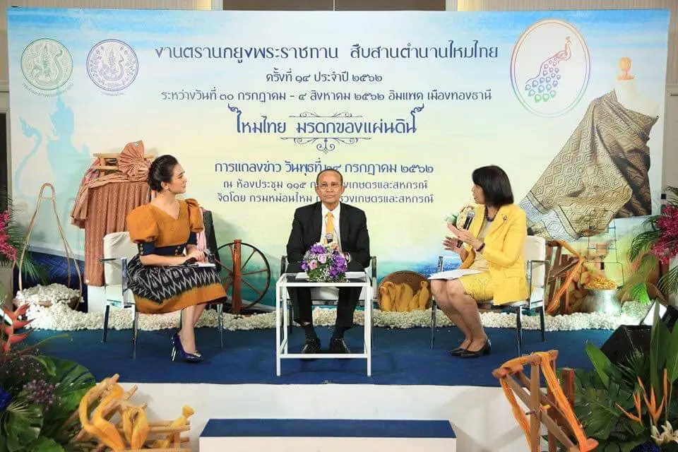 งานแถลงข่าว เตรียมเปิดงาน "ตรานกยูง" พระราชทาน สืบสานตำนานไหมไทย ครั้งที่ 14 ประจำปี 2562 ได้รับเกียรติจาก นายสุดสาคร ภัทธกุลนิษฐ์ ผู้ตรวจราชการกระทรวงการเกษตรและสหกรณ์ เป็นประธานแถลงข่าว และนางสาวศิริพร บุญชู อธิบดีกรมหม่อนไหม ร่วมพูดคุยถึงกิจกรรมที่จะมีภายในงาน พร้อมกับทั้งเชิญชวน ผู้สนใจเข้าร่วมงาน ชม ช๊อปผ้าไหมที่ได้รับมาตรฐาน ตรานกยูง พระราชทานและผลิตภัณฑ์หม่อนไหม