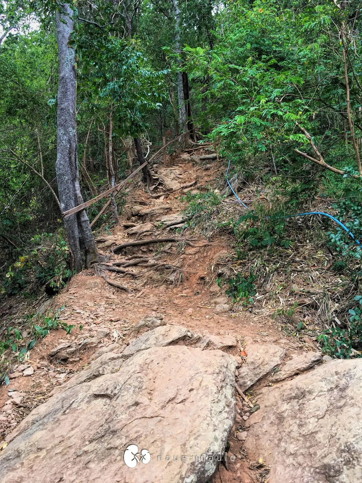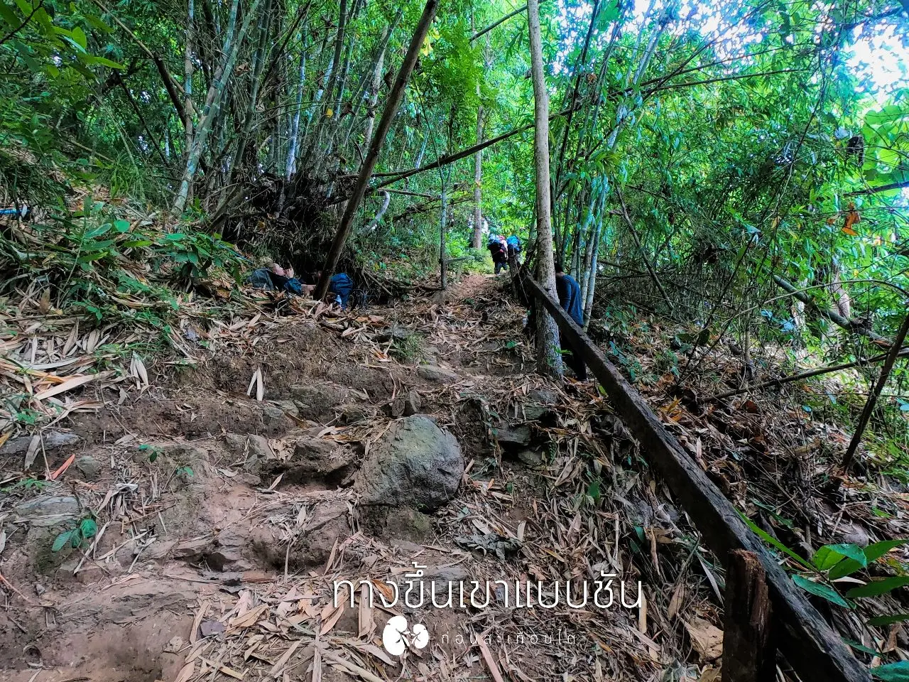 หลังจากนั่งพักผ่อนเดิมน้ำถ่ายภาพกันสักพักแล้ว ก็ออกเดินทางกันต่อกับเส้นทางที่สุดแสนจะชันและหรรษาแข้งขาอีกครั้งครับ ถ้าหากเราพยุงตัวไม่ไหวทางอุทยานก็ได้ทำราวไว้ให้จับแล้วค่อยๆปีนขึ้นไปนะครับ ก็ถือว่าช่วยได้เยอะเลยทีเดียวละ