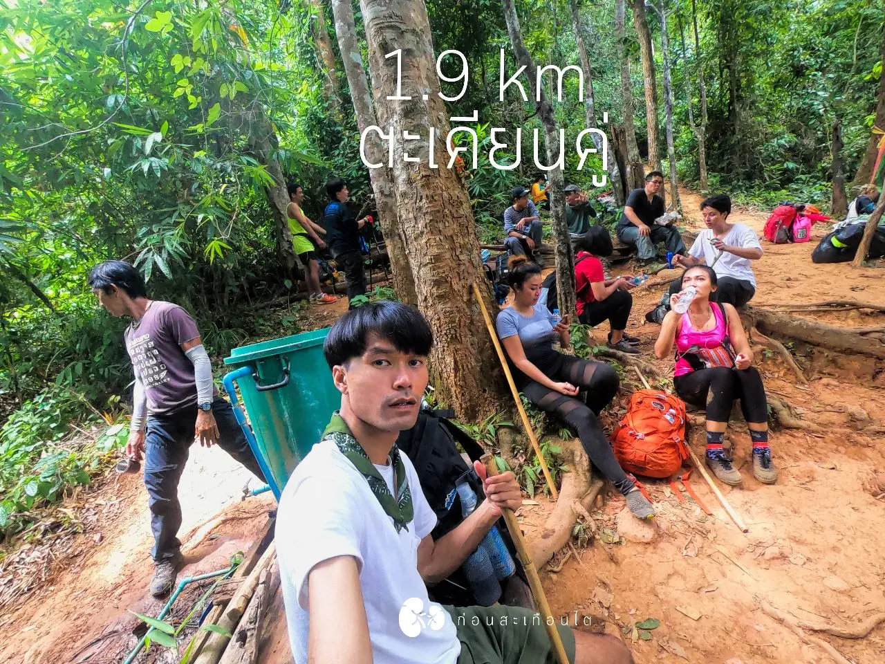 เดินกันมาได้อีกพักใหญ่ (ราวๆ 200 เมตรได้ 55+ พักใหญ่มากเพราะเดินนานอะ ) เราก็มาถึงจุดที่เรียกว่า ตะเคียนคู่ กิโลเมตรที่ 1.9 ครับ ซึ่งตอนที่ผมมาถึงนั้นก็เป็นเวลาเที่ยงพอดีก็เลยหยุดพักทานข้าวกันตรงนี้ แต่ด้วยความที่ว่าข้าวเที่ยงนั้นดันอยู่กับเพื่อนรุ่นน้องที่ทิ้งผมไปล่วงหน้าก่อน ผมจึงได้แต่กินขนมและน้ำประทังชีวิตไปพรางๆครับ