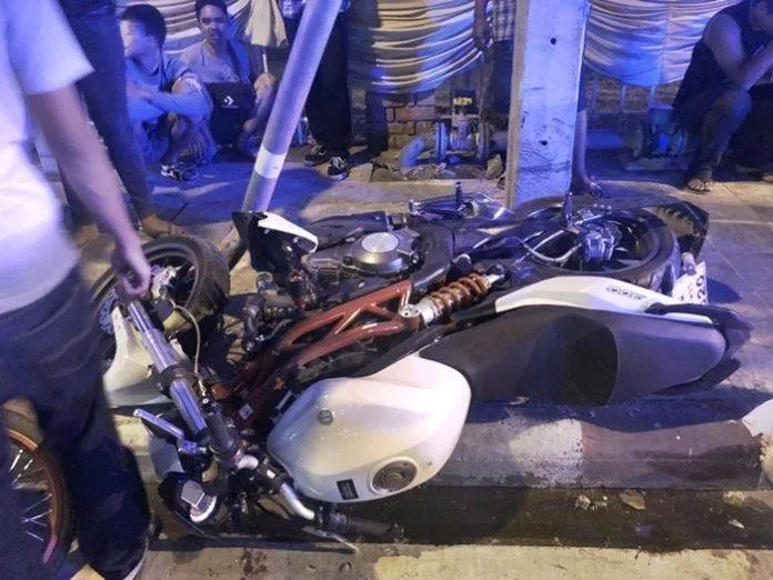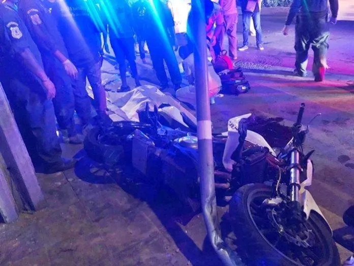 เซ่นป้ายบอกทาง!!! บิด "เบเนลลี" เหินเวหาเสียหลัก ชนเสาป้ายบอกทางสังเวย 2ศพ ปากซอยฉลองกรุง 1
