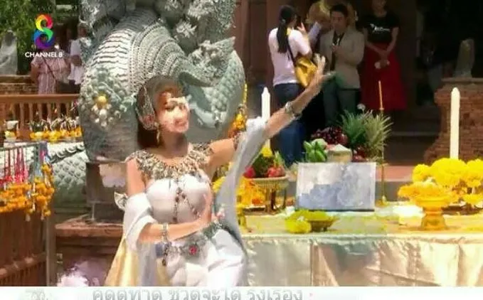ทำให้ล่าสุด ยีน เกวลิน ศรีวรรณา นางเอกของเรื่อง ซึ่งรับบทเป็น “มณีเนตรนาคี” ตัดสินใจรำบวงสรวงถวาย “พญาศรีสุทโธนาคราช” ที่ วัดป่าคลอง 11 หรือ คำชะโนด 2