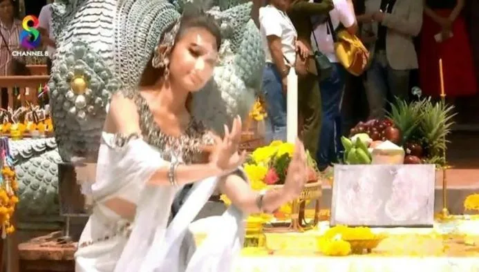 ขณะที่รำบวงสรวงในวินาทีที่ 46 ได้เกิดเงาภาพซ้อนบนหน้าของสาว ยีน คล้ายพญานาค นานถึง 20 วินาที
