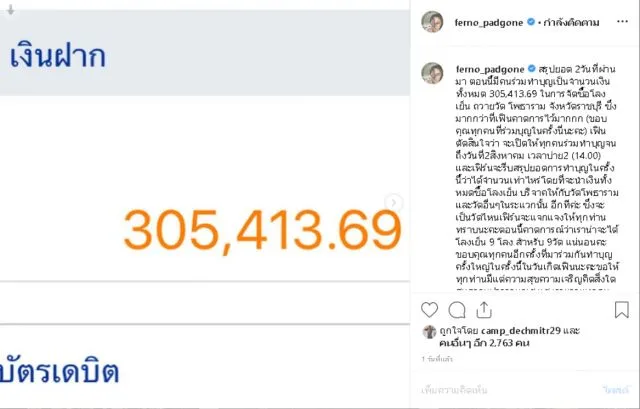 ใบเฟิร์น พัสกร โพสต์ทำบุญวันเกิด ซื้อโลงเย็นถวายวัด กว่า 3 แสน