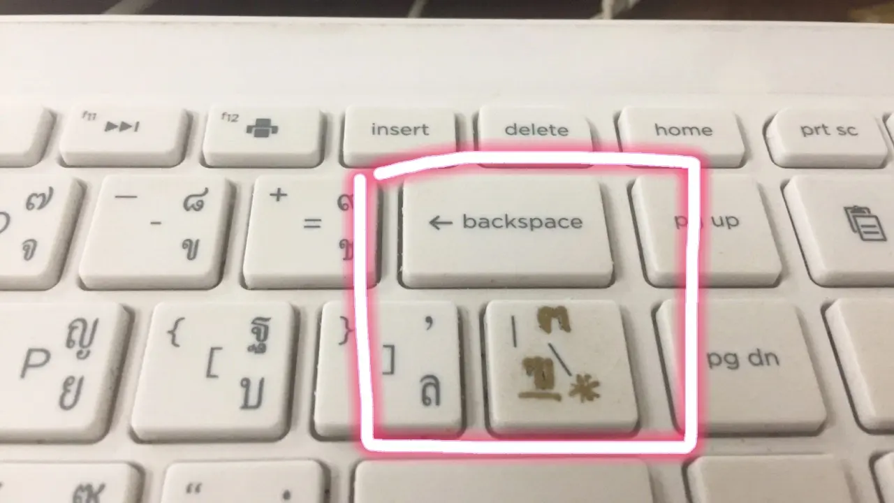 เคยเป็นมั้ยคะ เวลาที่ต้องพิมพ์ตัวอักษรที่ใช้ไม่บ่อยหนักบนคีย์บอด อย่างตัว ฅ และ ฃ แต่ หากผู้ใช้งานพิมพ์สัมผัส หรือจำตัวอักษรบนคีย์บอดได้ไม่แม่นยำเท่าไหร่นัก ก็จะเกิดปัญหาในการหาตัวอักษรสองตัวนี้ทันที ซึ่งตามปกติในคอมพิวเตอร์ตั้งโต๊ะทั่วไปนั้น จะไม่มีการสกรีนเจ้าตัวอักษรสองตัวนี้ไว้บนคีย์บอร์ด แต่ความเป็นจริงแล้วตัวอักษรสองตัวนี้ถูกซ่อนไว้ที่ ปุ่ม ๆ หนึ่ง เรียกว่าปุ่ม แบ็คสแลซ (backslash) ซึ่งอยู่ฝั่งฝามือของคีย์บอร์ด บริเวณ ใต้ปุ่ม ลูกศรลบ (backspace) ตามภาพดังนี้