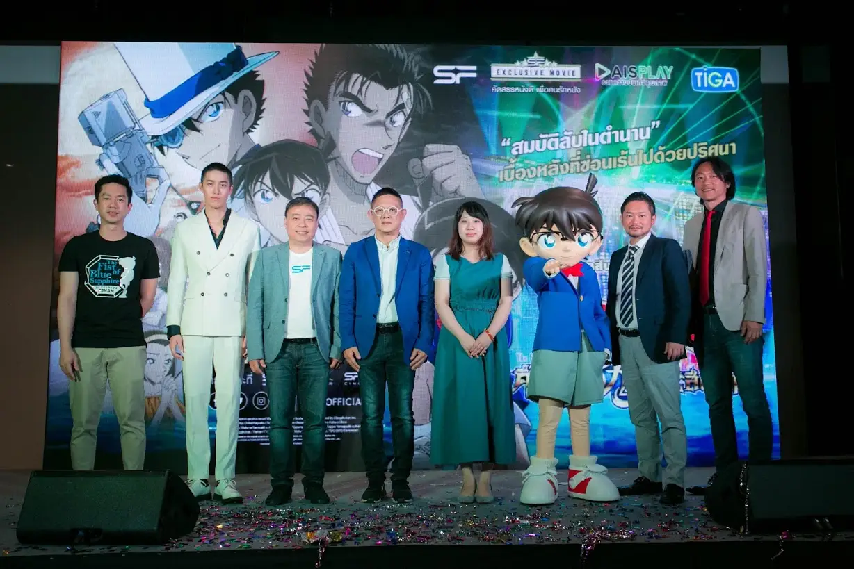 บริษัท ทีไอจีเอ จำกัด นำโดย คุณสิทธิชัย รุจิภาสกุล กรรมการผู้จัดการ (ที่ 4 จากซ้าย) พร้อมด้วย คุณสุพัฒน์ งามวงศ์ไพบูลย์ ผู้ช่วยประธานเจ้าหน้าที่บริหาร บริษัท เอส เอฟ คอร์ปอเรชั่น จำกัด (มหาชน) (ที่ 3 จากซ้าย) จัดงานเปิดตัวภาพยนตร์ “ยอดนักสืบจิ๋วโคนัน เดอะ มูฟวี่ 23 ศึกชิงอัญมณีสีคราม” รอบกาล่า พรีเมียร์ นอกจากนี้ยังได้ “ธนภพ ลีรัตนขจร” (ที่ 2 จากซ้าย) มาร่วมสร้างสีสันด้วยการแสดงมินิคอนเสิร์ต ตลอดทั้งกิจกรรม ณ โรงภาพยนตร์ SF World Cinema ศูนย์การค้าเซ็นทรัลเวิลด์ วานนี้