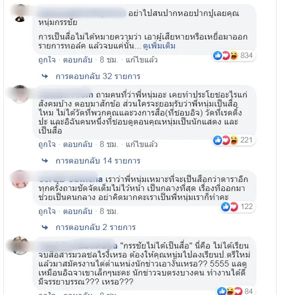 สื่อที่ดีต้องเป็นแบบคุณหนุ่มกรรชัยเอาผู้เสียหายมาออกรายการ และให้ข้อมูลให้ครบถ้วนทั้งสองฝ่าย ไม่ใช่ว่าเอาเฉพาะผู้เสียหายมาออกรายการ