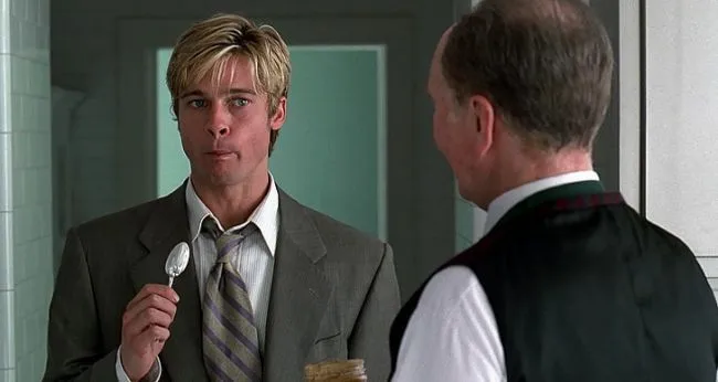 เพื่อให้ภาพบนหน้าจอของเขาดูสมบูรณ์แบบเขาต้องทำงานกับรอยยิ้มสีขาวของเขา แต่ไม่นานเขาก็ได้รับเชิญให้เข้าร่วมหนัง Fight Clubแบรดพิตต์ต้องรับบทเป็น Tyler Durden เขาจึงไปหาหมอฟันและเฉือนเอาฟันซี่หน้าออกเล็กน้อยเพื่อรับบทนี้