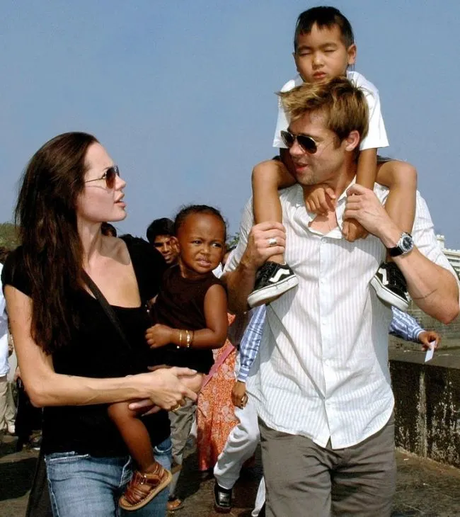 แบรดพิตต์พบกับแอนเจลิน่า โจลี่ ในฉากของ Mr. & Mrs. Smith และแอนเจลิน่า โจลี่ให้กำเนิดลูกที่นามิเบียในอีกหนึ่งปีต่อมา จากนั้นนักแสดงกลายเป็นพ่อของฝาแฝดและเลี้ยงดูลูกๆที่อยู่ในอุปการะ