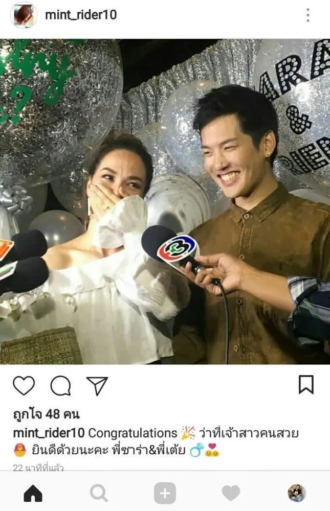 คุกเข่าขอแต่งงานตั้งแต่ปลายปี 2560 จนถึงตอนนี้คู่ของ คุกเข่าขอแต่งงานตั้งแต่ปลายปี 2560 จนถึงตอนนี้คู่ของ ‘ซาร่า’ แจงความต่างศาสนาไม่ใช่เหตุไร้แพลนแต่ง ‘เต้ย’ คุกเข่าขอแต่งงานตั้งแต่ปลายปี 2560 จนถึงตอนนี้คู่ของ “ซาร่า” นลิน และ”เต้ย” ธโนทัย ก็ยังไม่ได้เตรียมแผนการแต่งงานเลย ทั้งที่หลายคู่ที่มาขอแต่งหลังจากคู่นี้ เตรียมเข้าประตูวิวาห์กันหมดแล้ว งานนี้ผู้สื่อข่าวเจอสาวซาร่าที่มาเป็นพิธีกรในปาร์ตี้ฉลองครบรอบ 5 ปี โยเกิร์ตเมจิ บัลแกเรีย ชั้น LG ศูนย์การค้าสยาม สแควร์วัน จึงถามถึงเรื่องนี้ อัพเดทงานแต่งนิดนึงว่าไปถึงไหนแล้ว “เอาจริงๆ นะคะ เราก็กำลังคุยกัน เรารู้สึกว่าอยากที่จะมีความพร้อมให้มากกว่านี้ก่อน เพราะซาร่ายังติดเรื่องของการสร้างบ้านให้คุณพ่อคุณแม่อยู่ ซึ่งจะเสร็จคร่าวๆ น่าจะประมาณปีหน้า ตอนนี้ก็รอให้ทุกอย่างมันเสร็จเรียบร้อยก่อน”
