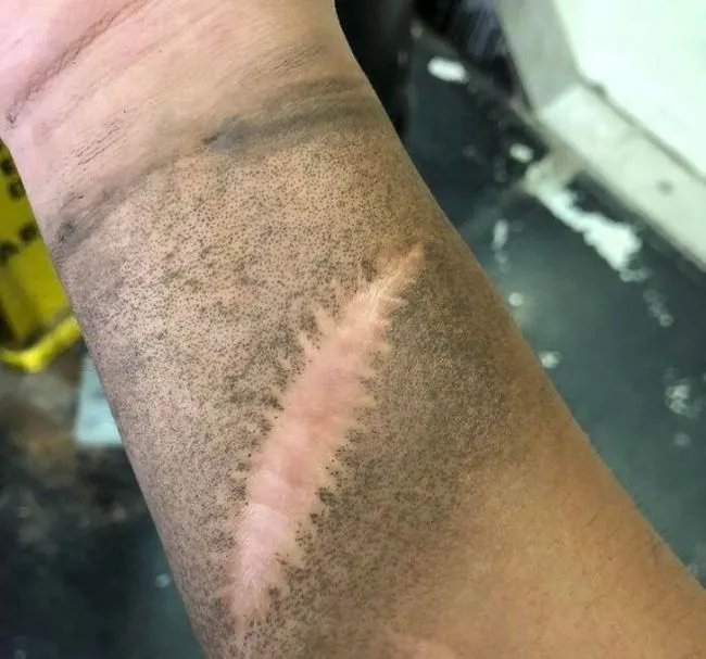 2 บริเวณที่เป็นแผลเป็นจะไม่มีฝุ่นที่สกปรกเกาะติดได้เพราะต่อมเหงื่อและปุ่มรากขนไม่เจริญทดแทนในเนื้อเยื่อแผลเป็น
