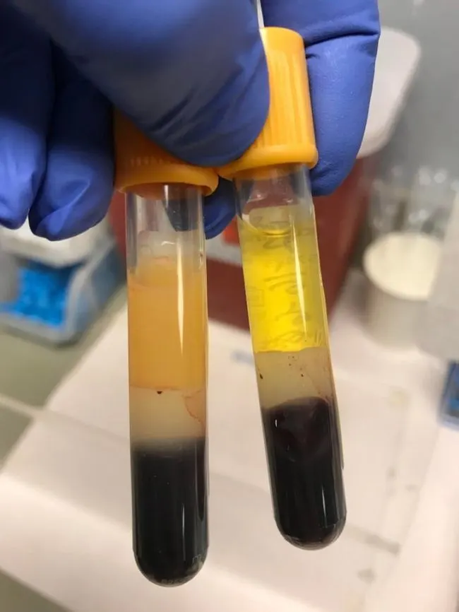 7 “ มาดูกันว่าอาหารมีผลต่อเซรุ่มในเลือดอย่างไร: ไม่อดอาหาร (ซ้าย) และอดอาหาร (ขวา)”