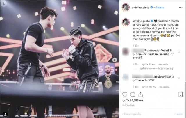 ล่าสุด ทางด้านหนุ่มอองตวนเอง ก็ออกมาโพสต์ให้กำลังใจ น้องเจ้าขุน เพราะบอกได้เลยว่ากระแสแรงมาก ซื้อหนุ่มอองตวนได้โพสต์ข้อความระบุว่า น้องชาย 2 month of hard work It wasn’t your night, but no regrets Proud of you lil man! time to go back to a normal life now! No more sweat and tears! ps. Got your hair right