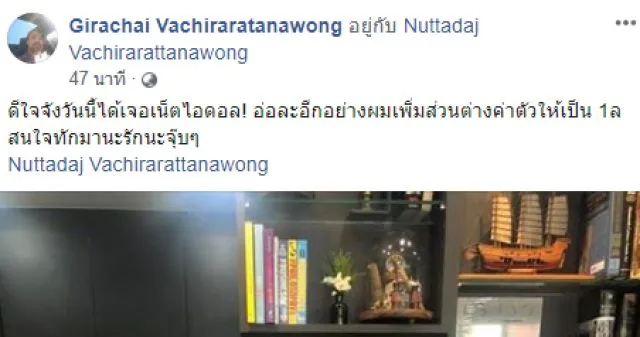 ล่าสุดทางทีมงานเพชรยินดีได้แท็กหาเสี่ยโบ๊ท พร้อมกับระบุข้อความว่า ดีใจจังวันนี้ได้เจอเน็ตไอดอล! อ่อละอีกอย่างผมเพิ่มส่วนต่างค่าตัวให้เป็น 1 ล้าน สนใจทักมานะรักนะจุ๊บๆ
