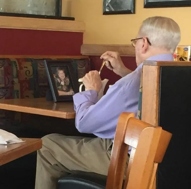 6 สุภาพบุรุษคนนี้กำลังดื่มกาแฟกับภรรยาผู้จากไป ทุกคนสมควรได้รับความรักเช่นนี้