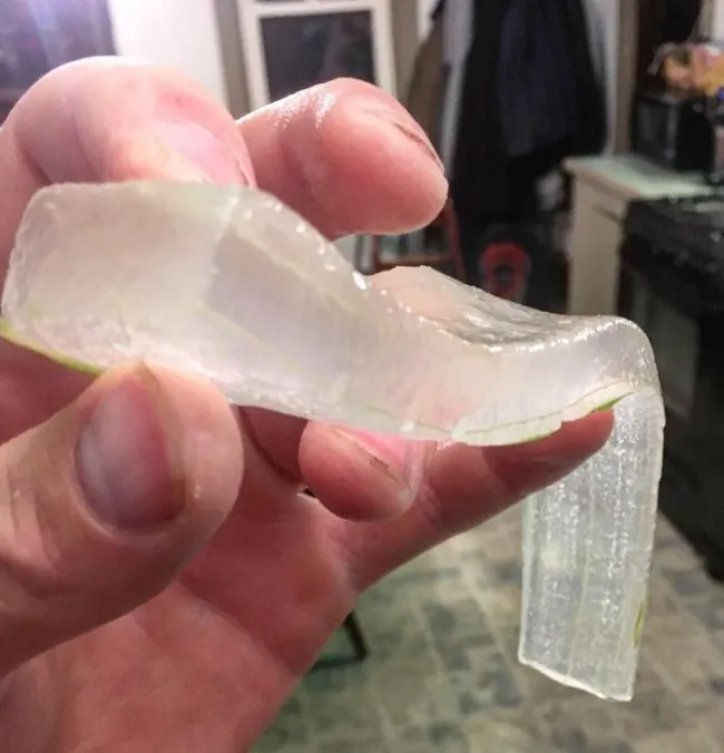 ใบว่านหางจระเข้ที่ปอกเปลือกออกนี้ดูน่าพึงพอใจอย่างประหลาด