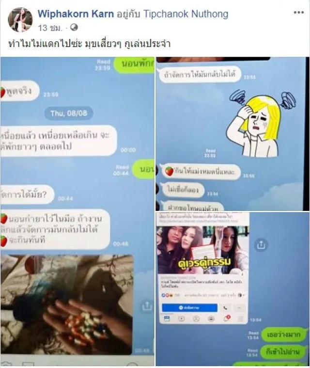 ล่าสุดทำเอาหลายๆคนตกใจหนัก กานต์ ได้ออกมาโพสต์แชท ที่ อีฟคุยกับเสกโลโซขณะที่เธอนั้นกำ ยา อยู่ในมือพร้อมบอกจะกินให้หมด ทั้งนี้กานต์ยังได้ระบุแคปชั่นว่า “ทำไมไม่แดกไปซ่ะ มุขเสี่ยวๆ กูเล่นประจำ”