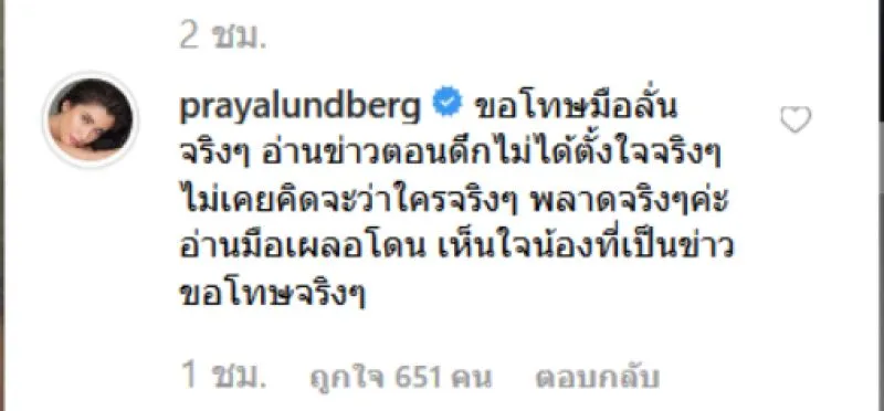 ล่าสุดทางสาวปู ก็เข้ามาแสดงความคิดเห็นบนข่าวดังกล่าว ระบุว่า ขอโทษมือลั่นจริงๆ อ่านข่าวตอนดึกไม่ได้ตั้งใจจริงๆ ไม่เคยคิดจะว่าใครจริงๆ พลาดจริงๆค่ะ อ่านมือเผลอโดน เห็นใจน้องที่เป็นข่าว ขอโทษจริงๆ