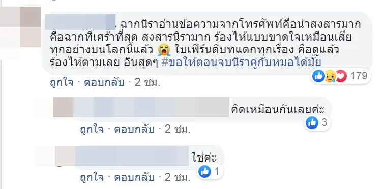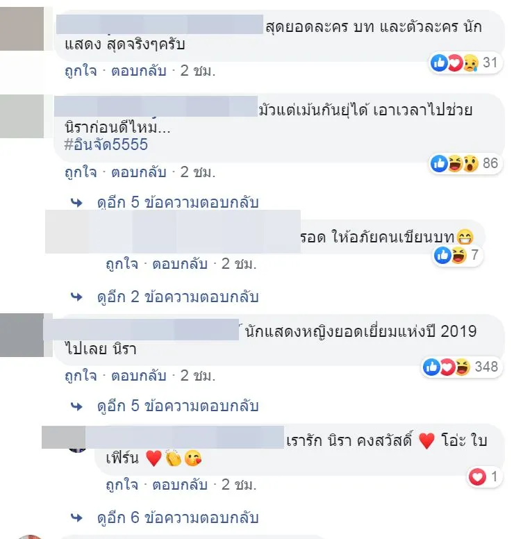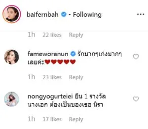 ล่าสุดกับบทนิรา ที่เธอเล่นได้ดีมาทุกฉากแต่เมื่อคืนที่เธอเล่นได้สมบทบาทที่ได้รับ นิราที่รู้สึกแบบไหนถ่ายทอดออกมาได้สมจริงให้แฟนคลับที่รอชมต่างพากันรักและชอบเธอเป็นอย่างมาก เรียกได้ว่าเพื่อนๆในวงการยอมรับในฝีมือและมาตามเมนต์กันเยอะมากจริงๆ รักนิราสุดเลย