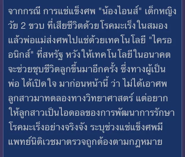 เด็กไทยคนแรก ที่ถูกแช่แข็งกำลังจะฟื้นคืนชีพ