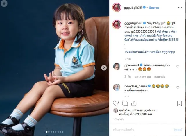 และล่าสุด คุณแม่คนสวยอย่างกุ๊บกิ๊บ ได้โพสต์ข้อความลงในไอจีเป็นภาพของน้องเป่าเปา จะสงสารก็สงสาร จะเอ็นดู ก็เอ็นดูมากเมื่อ เป่าเปา ลูกสาวของ กุ๊บกิ๊บ สุมณทิพย์ กับ บี้ ธรรศภาคย์ ต้องถ่ายภาพที่โรงเรียนก่อนปิดเทอมอนุบาล แต่เนื่องจากสาวน้อยยังไม่พร้อมจึงปล่อยโฮร้องไห้ แต่ด้วยสปิริตของเน็ตไอดอลตัวน้อย พอถึงเวลาต้องถ่ายจริงๆ น้องเป่าเปา ฝืนยิ้มเพื่อที่จะได้ภาพสวยๆ ออกมาให้ได้ชม โดยคุณแม่กุ๊บกิ๊บได้โพสต์ข้อความระบุว่า my baby girl รูปถ่ายที่โรงเรียนตอนก่อนปิดเทอมเตรียมอนุบาล5555555555555 ขำดังมาก ตาแดงฉ่ำเพราะให้ถ่ายรูปยังไม่พร้อมเลยร้องไห้ ตอนหลังยอมถ่ายยิ้มฝืนๆ555555