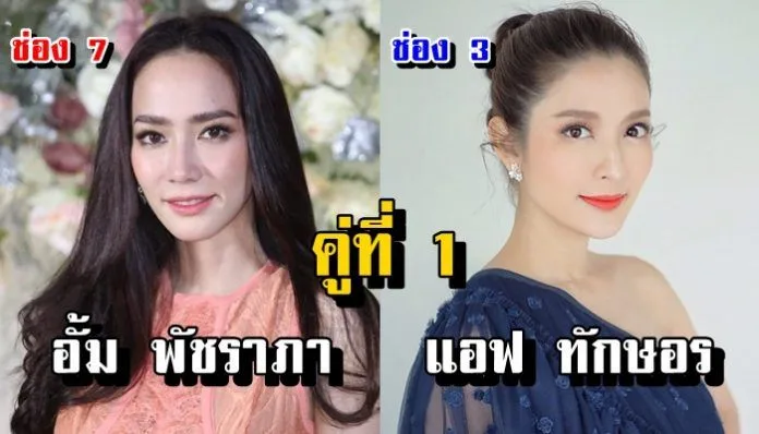 เรียกได้ว่าเป็นที่สุดของตัวแม่ของแต่ละช่องเลยล่ะค่ะ กับอั้ม พัชราภา จากทางฝั่งช่อง 7 และ แอฟ ทัษอร ทั้งคู่นั้นกินกันไม่ลงจริงๆ ถ้าสองคนนี้สู่กันจริงๆ วงการต้องมีสั่นสะเทือนบ้างแหละค่ะ