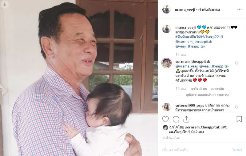 คุณตาได้อุ้มหลานแล้ว หนุ่ม ศรราม พา น้องวีจิ ลูกสาว ไปเยี่ยมตา โดย ติ๊ก กนิษฐรินทร์ หรือ ติ๊ก บิ๊กบราเธอร์ โพสต์ภาพลงอินสตาแกรมชื่อ mama_veeji โดยได้ระบุข้อความว่า หลานของตา ตาของหลาน ติดดินแต่บินได้ #ติดดินแต่บินได้ #[email protected][email protected]_theappitak