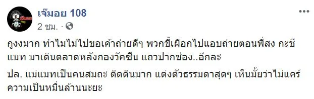 “กูงงมาก ทำไมไม่ไปขอเขาถ่ายดีๆพวกขี้เสือกไปแอบถ่ายตอนที่พี่ส่งกับทีมแอ๊ดมาเดินตลาดหลังกองวัคซีน แถวปากช่อง…อีกละ ปล.แม่แมทเป็นคนสมถะ ติดดินมาก แต่งตัวธรรมดาสุดๆ เห็นมั้ยว่าไม่แคร์ความเป็นหมื่นล้านนะยะ