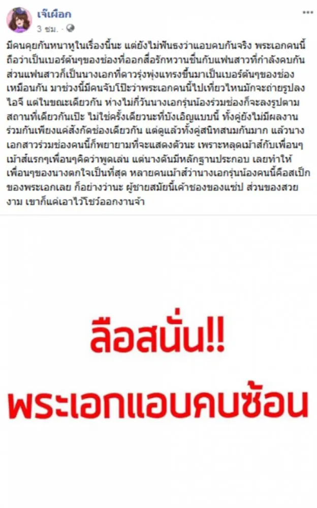 เรียกได้ว่าเป็นเรื่องราวและประเด็นที่ถูกพูดถึงกันอย่างมากในโลกโซเชียล หลังมีประเด็นดราม่าว่าพระเออย่างหนุ่มเวียร์คบซ้อน นั่นก็คือสาวชิงชิง ดาราหน้าใหม่ทางช่อง7 โดยทางเพจเจ๊เผือกได้ระบุข้อความว่า