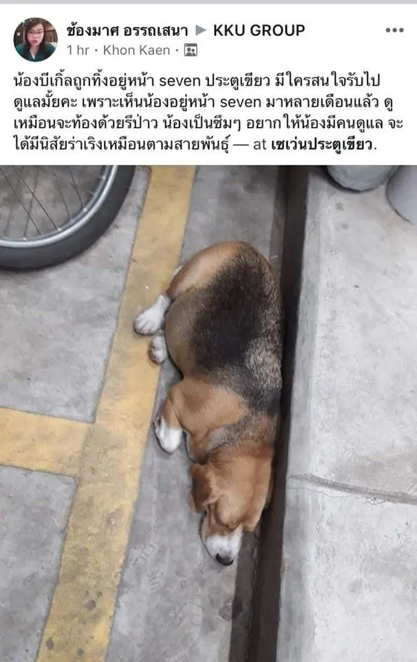 เมื่อไม่นานมานี้ผู้ใช้งานเฟสบุ๊กคุณ : ช้องมาศ อรรถเสนา ได้เผยเรื่องราวหลังเธอนั้นได้พบเจอกับเจ้าบีเกิ้ลถูกทิ้งให้อยู่หน้าเซเว่น เธอเองก็เกิดความสงสารเพราะเห็นว่าน้องนอนและอยู่อาศัยหน้าเซเว่นมาหลายเดือนแล้ว เหมือนน้องจะท้องด้วยนะเพราะตัวดูพองๆผิดปกติ
