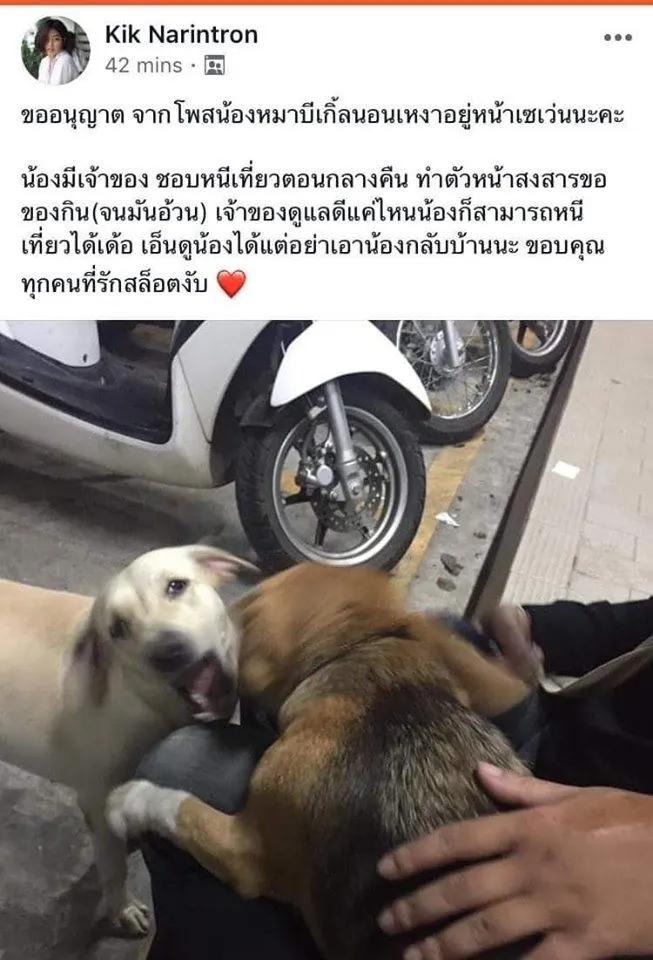 เธอเองก็รู้สึกอยากช่วยเหลือน้องเพราะเห็นว่าน้องดูซึมๆไป ไม่เหมือนกับสายพันธุ์ที่สุดจะกระตือรือร้น จนมีชาวเน็ตท่านหนึ่งได้เข้าโพสต์ตอบกลับว่า จริงๆแล้วน้องบีเกิ้ลมีเจ้าของ แต่มันชอบหนีออกจากบ้านมาตอนกลางคืน ชอบทำตัวหน้าสงสารคอยขอของกินของนักศึกษาคนอื่นๆ