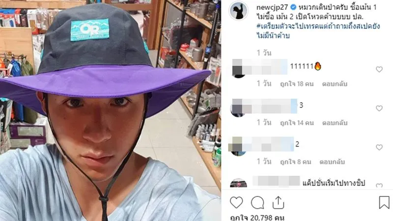 สืบเนื่องจากประเด็นดังกล่าว ได้มีการเคลื่อนไหวจากฝั่งของ นิว ชัยพล ที่ได้มีโพสต์ภาพพร้อมระบุแคปชั่นว่าตัวเองไม่ยืนยันสเปค โดยระบุข้อความว่า หมวกเดินป่าครับ ซื้อเม้น 1 ไม่ซื้อ เม้น 2 เปิดโหวตค้าบบบบ ปล. #เตรียมตัวจะไปเทรคแต่ถ้าถามถึงสเปคยังไม่มีน๊าค้าบ