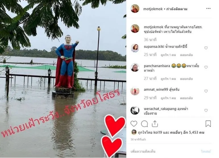 ล่าสุด ตลกดัง หม่ำ จ๊กมก ซูเปอร์หม่ำ ก็ไม่รอด ฤทธิ์พายุถาโถมต่อเนื่อง โดย มด หวานใจตลกดัง โพสต์สภาพน้ำท่วม ที่มีรูปปั้น ซูเปอร์หม่ำ ถูกน้ำล้อมรอบ พร้อมแคปชั่นว่า…