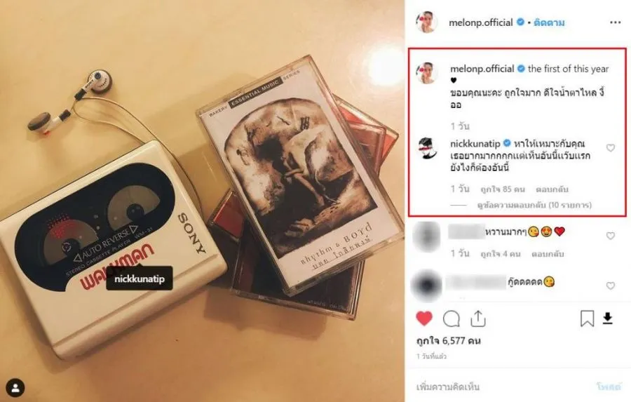 ล่าสุด แตงโมก็ออกมาโพสต์ภาพของขวัญชิ้นพิเศษที่ นิก ซื้อให้นั่นก็คือ เครื่องเล่นเทปคาสเซ็ต โดยเผยแคปชั่นว่า “the first of this year ♥️ ขอบคุณนะคะ ถูกใจมาก ดีใจน้ำตาไหล งื้ออ”