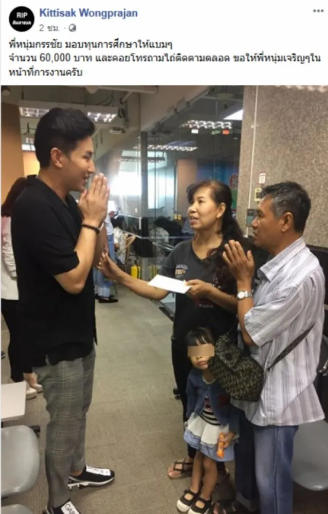 ทั้งนี้ นายกิตติศักดิ์ วงศ์ประจันต์ ได้โพสต์ข้อความบนเฟซบุ๊กเกี่ยวกับเหตุการณ์นี้ว่า พี่หนุ่มกรรชัย มอบทุนการศึกษาให้แบมๆ จำนวน 60,000 บาท และคอยโทรถามไถ่ติดตามตลอด ขอให้พี่หนุ่มเจริญๆในหน้าที่การงานครับ