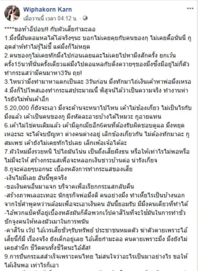 และล่าสุด กานต์ วิภากร ก็โพสต์เดือดถึงเสี่ยกำมะลอ คนหนึ่งซึ่งไม่ทราบว่างานนี้เธอหมายถึงใครกันแน่แต่พออ่านจนจบก็ถึงกับเดาอออกกันเลยทีเดียว ซึ่งได้โพสต์ข้อความระบุว่า