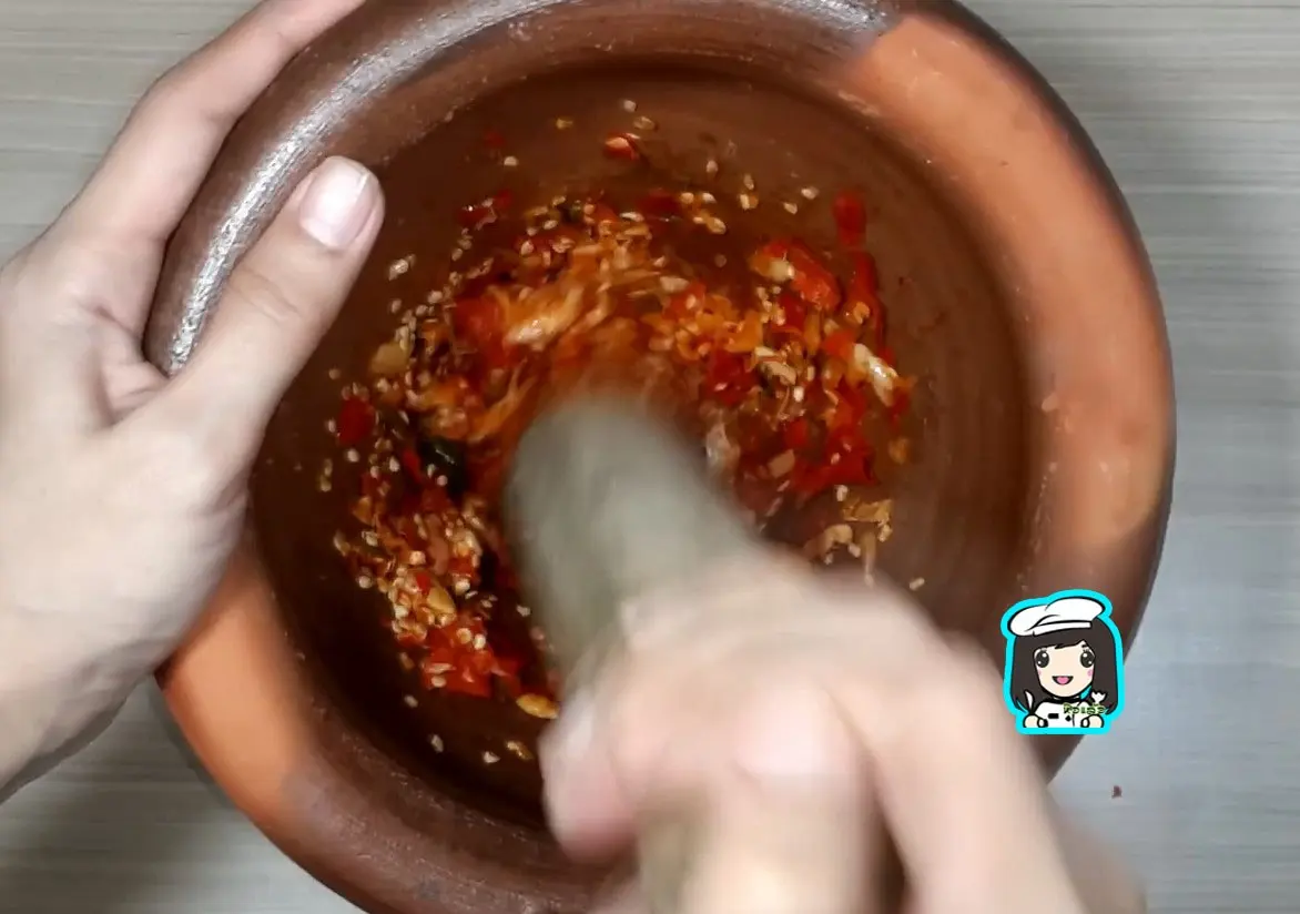 2.โขลกพริกกระเทียมความเผ็ดตามชอบ
