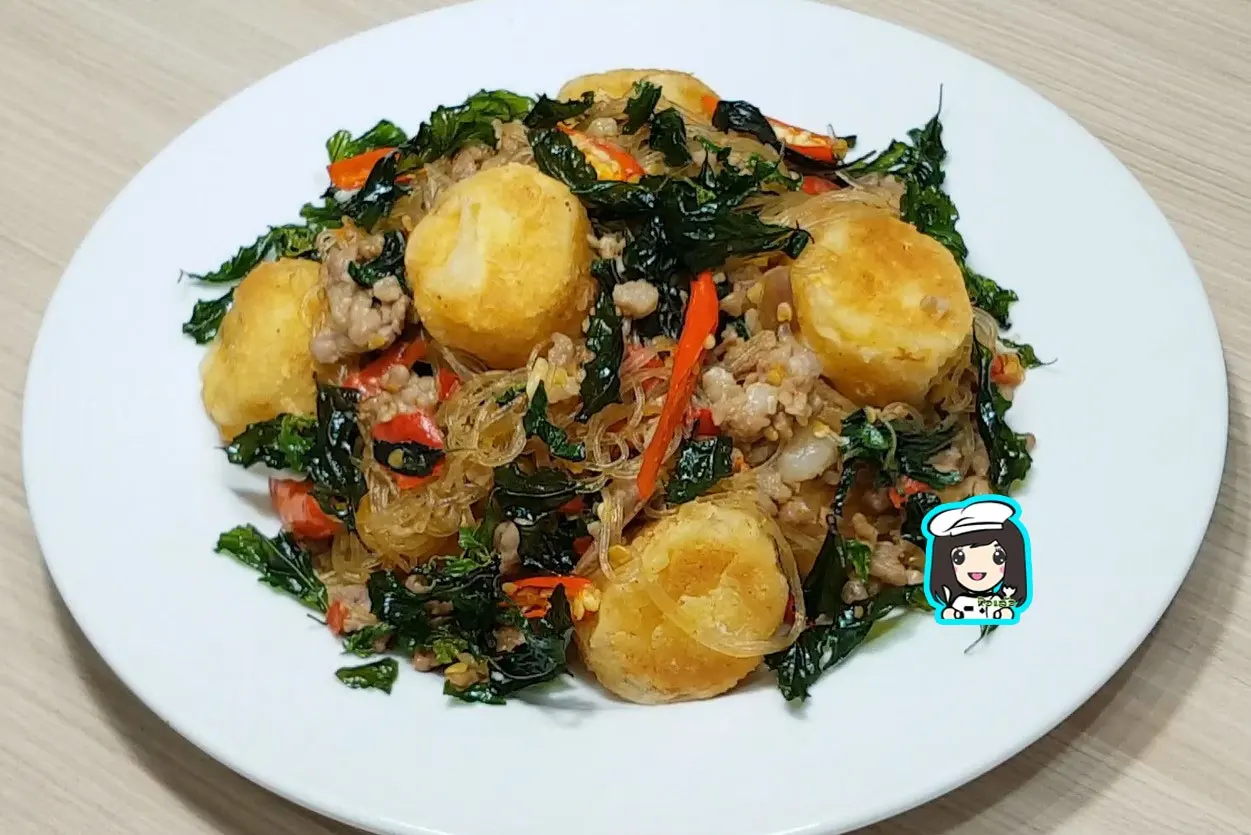 กะเพราวุ้นเส้นเต้าหู้กรอบ