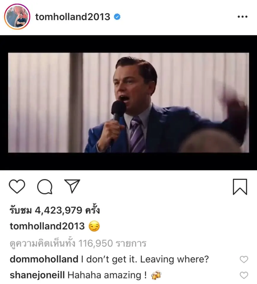หลังจากที่ทราบข่าวว่า Spider-Man จะยังอยู่กับมาร์เวลต่อไป ทอม ฮอลแลนด์ ก็ประกาศกร้าวผ่าน Instagram ว่ากูไม่ออก! โดยโพสต์คลิปจากหนังเรื่อง The Wolf of Wall Street ฉากที่จอร์แดน เบลฟอร์ท พูดต่อหน้าพนักงานในบริษัทว่าเขาจะยังอยู่กับทุกคน และโชว์จะต้องดำเนินต่อไป โพสต์นี้ก็มีนักแสดงมาร่วมแสดงความยินดีไม่ว่าจะเป็น The Rock, Zendaya, Mark Ruffalo