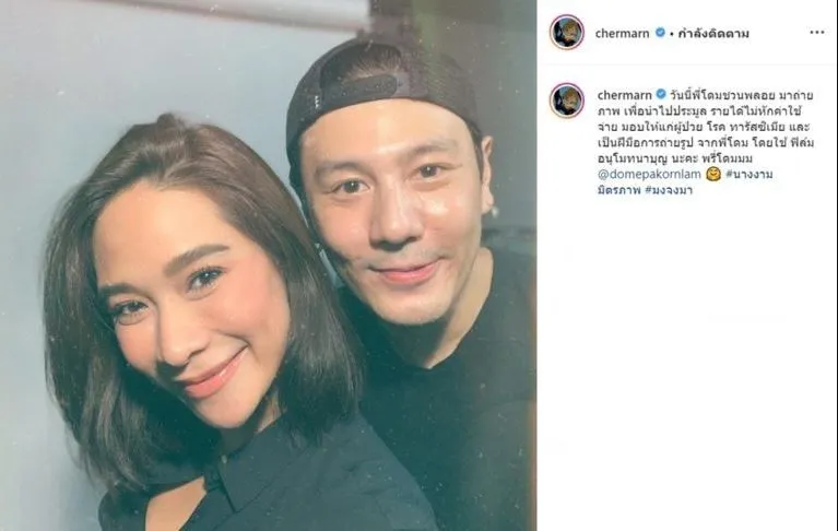 ล่าสุด พลอย เฌอมาลย์ ก็ได้โพสต์ภาพถ่ายคู่กับโดม พร้อมข้อความว่า “วันนี้พี่โดมชวนพลอยมาถ่ายภาพ เพื่อนำไปประมูล รายได้ไม่หักค่าใช้จ่าย มอบให้แก่ผู้ป่วยโรคธาลัสซีเมีย และเป็นฝีมือการถ่ายรูปจากพี่โดม โดยใช้ฟิล์ม อนุโมทนาบุญนะคะ พรี่โดมมม @domepakornlam #นางงามมิตรภาพ #มงจงมา”