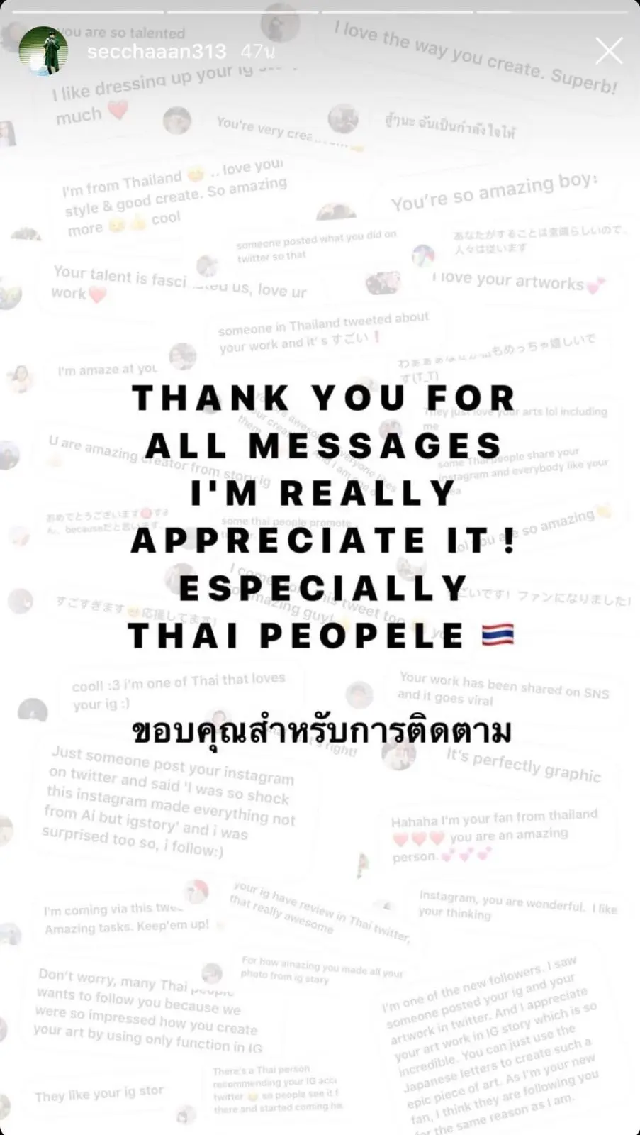 สุดท้าย ข่าวที่คนไทยชื่นชมก็ไปถึงเจ้าตัว จึงได้โพสขอบคุณเป็นการใหญ่ เค้าบอกว่าซึ้งใจมาก ๆ