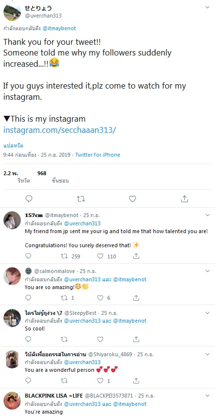 คนดังของไทยก็ฟอลโล่เค้าด้วยนะ เช่น ndmikkiholic , june.bnk48