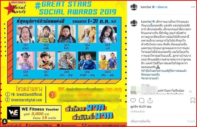 โดยคุณพ่อก็ระบุว่า เลิกการเอาเด็กมาโหวตแข่งกันแบบนี้เถอะครับ แข่งดัง แข่งซุปเปอร์สตาร์ เลิกเหอะครับ เด็กทุกคนเค้ามีความน่ารักแตกต่างกัน ที่สำคัญ คุณกำลังสร้างความถูกเกลียดชังทางอ้อมให้เด็กเหล่านี้ เพราะเด็กบางคนอาจไม่ได้น่ารักถูกใจสำหรับใครบางคน คิดดีๆ คิดเยอะๆครับ และกรุณาช่วยเอาลูกผมออกจากการแข่งโหวตอะไรนี่ด้วยเถอะครับ ผมไม่โอเคกับการแข่งโหวตอะไรแบบนี้…ลูกชาวบ้านบางคนน่ารักและมีความสามารถมากกว่าลูกผมอีก แค่เค้าไม่มีโอกาสและไม่ใช่ลูกดารา ขอบคุณครับ
