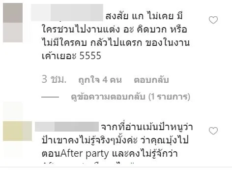 งานนี้มีชาวเน็ตเข้ามาแสดงความคิดเห็นกันมากว่าคุณป้าท่านนี้อาจจะไม่รู้ หรือไม่ได้อ่านคอมเมนต์ชี้แจง หรืออาจจะไม่รู้จักงาน After Party ก็ได้ แต่ไม่ว่าจะยังไง ก็ทำเอาเจ้าตัวไม่สบอารมณ์เท่าไหร่