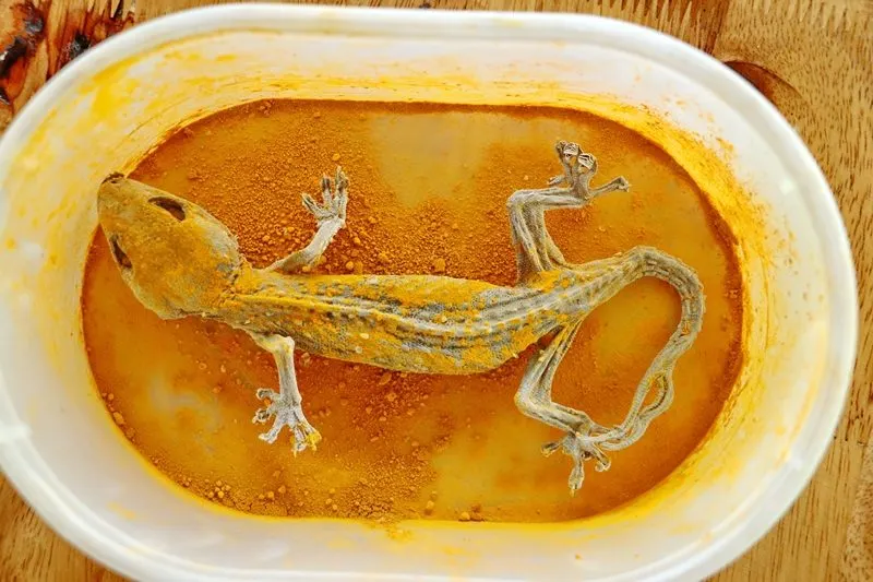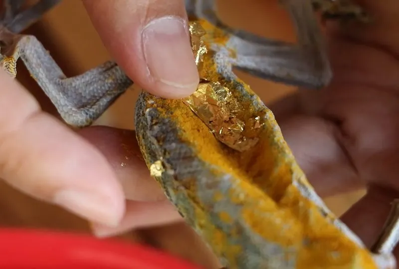 พบว่า นางละไม พร้อมญาติๆ กำลังตั้งวงพูดคุยพร้อมนำซากตุ๊กแกที่ถูกเก็บไว้ในกล่องออกมา พบว่าตัวตุ๊กแกแห้ง ที่หางมีลักษณะงอกออกเป็น 2 หาง ส่วนนิ้วเท้าคู่หน้าด้านซ้ายมี 5 นิ้ว และด้านขวามี 4 นิ้ว รวมถึงเท้าคู่หลังด้านซ้ายมี 4 นิ้ว และด้านขวามี 5 นิ้ว นางละไมได้นำเกลือและผงขมิ้นมาทาทั่วตัวของตุ๊กแก เพื่อรักษาสภาพไม่ให้เน่าเปื่อย แล้วนำแผ่นทองมาปิดที่บริเวณท้อง ตามความเชื่อ พร้อมกับตั้งชื่อให้ว่า “มารวย”