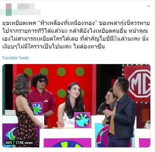 ผมยืนยัน ว่าไม่ได้มีเจตนาเหยียดเรื่องเพศ แต่อย่างใด คือตอนนั้นผมคิดมุกสด ที่มันเข้ากับช่วงจังหวะของรายการได้ แล้วก็เล่นออกไปเลย โดยไม่ได้ไตร่ตรองให้รอบคอบครับ และรายการก็นำมาออกอากศ ไม่ได้ตัดออกแต่อย่างใด