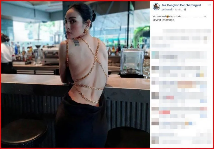 โดยสาวตั๊ก โพสรูปพร้อมแคปชั่น "ท่ารอกาเเฟ ง่วงมากค่ะ" โอ้โห แค่แผ่นหลังก็กินขาดแล้วจริงๆ แซ่บทุกท่าจริงๆ ยอมแล้วแม่