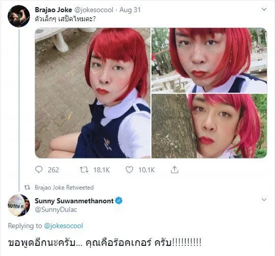 ซันนี่ รีบทวิตเตอร์หา โจ๊กโซคูล รับไม่ได้แต่งหญิง