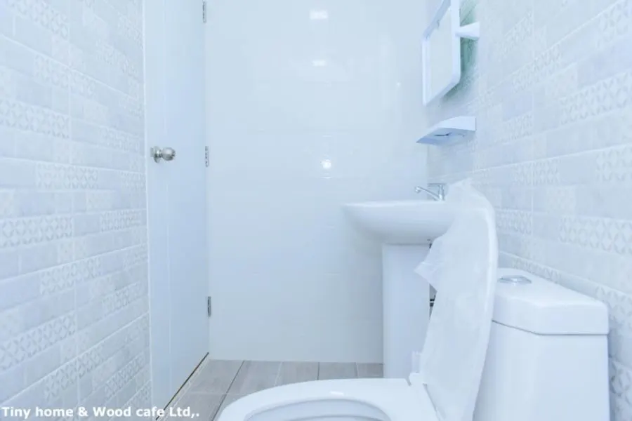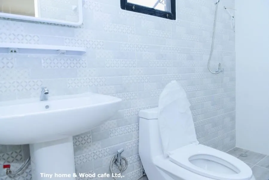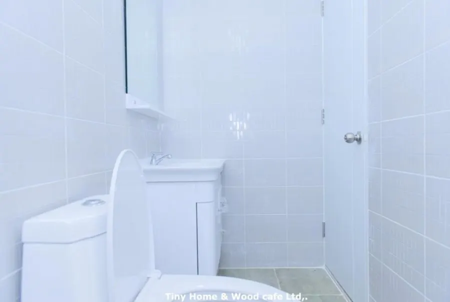 มาถึงอีกห้องที่มีความสำคัญอีกห้องหนึ่ง นั่นคือห้องน้ำ ซึ่งบ้านหลังนี้ให้ความสำคัญกับห้องน้ำดังภาพ มีเครื่องสุขภัณฑ์ อำนวยความสะดวกในห้องน้ำเพียงพอ ตกแต่งด้วยกระเบื้องสีขาวให้ความผ่อนคลาย ทำธุระส่วนตัวแบบสบายกายสบายใจ